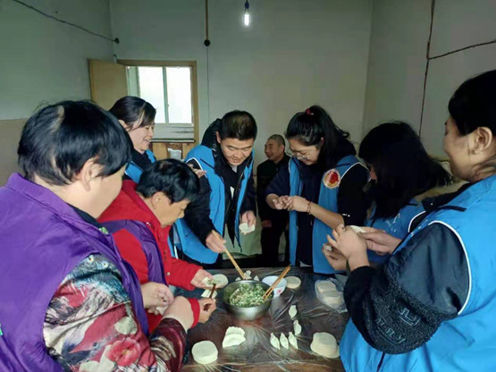 5日,先鋒新村小區,志愿者們一早便趕到困難村民涂普明、劉剛的家里開始忙活起來,和面、切菜、拌餡兒、包餃子。當吃著熱乎乎的餃子時,涂普明、劉剛心里也暖暖的。