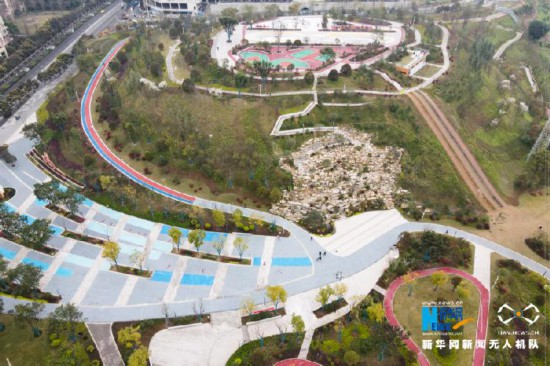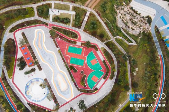 步道、跑道、綠植……這里沒有了泥濘不堪的地面,取而代之的是一步一景的美麗公園。新華網 耿駿宇 攝