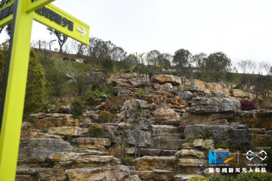 公園內有一片最大高差達70米的山坡,規劃了諸多出入口,既有坡度較緩的健康跑道,也有極具特色的綠境攀巖。新華網 耿駿宇 攝