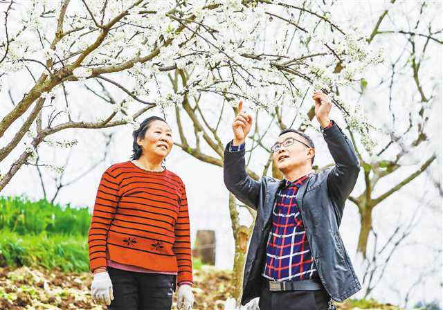 張志中(右)在李園指導村民進行花期管護。通訊員 熊偉 攝\視覺重慶