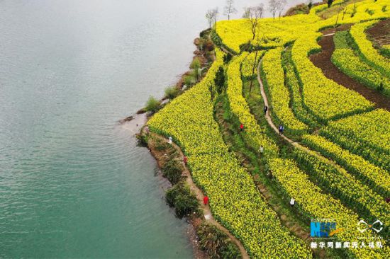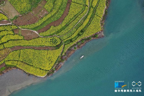 新華網消息,陽春三月,重慶黔江阿蓬江兩岸的油菜花盛開,形成長長的花帶,隨著一江春水蜿蜒,呈現出秀美的濕地風光。新華網發(楊敏 攝)