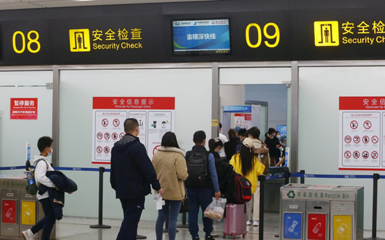 從重慶前往廣州、深圳兩地的旅客可享受跨航司自由變更。重慶江北機場供圖 華龍網-新重慶客戶端發