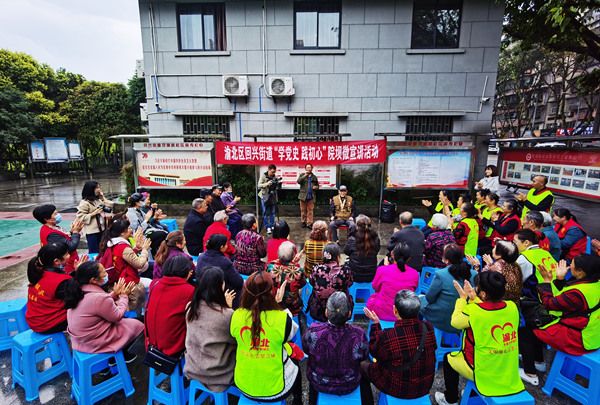 不同于常規宣傳講座,街道把微宣講從室內的會議室搬到室外的社區院壩,由“面向黨員”轉變為“面向更廣泛的居民群眾”,打造黨員群眾身邊的“黨史微課堂”,增強黨史學習教育的親和力和感染力。