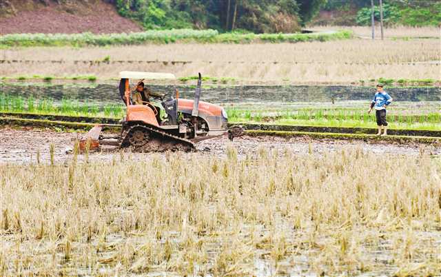 春日里,梁平區仁賢街道五一社區的田間地頭一派繁忙景象。伴著油菜花香,當地村民駕駛著大型耕田機在平整的水田間耕作,為種植水稻做準備。據介紹,隨著農機惠民補貼政策的落實和農村機械化程度的不斷加深,當地不少村民選擇了省時、省工、省力的機械化耕作。