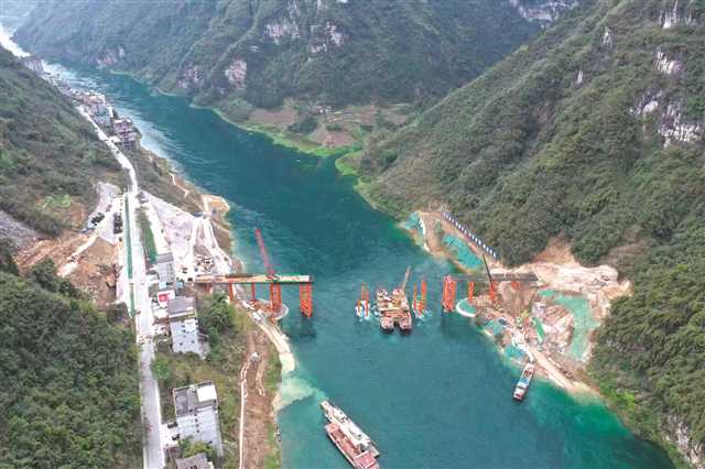 渝湘高速公路復線項目是重慶市高速路網規劃十一射線重慶巴南至湖南張家界高速公路的一段,也是G65渝湘高速公路的擴能項目。項目建成后,重慶主城區將新增一條通往湖南、廣東的大通道,也將促進彭水的旅游經濟發展。這是3月18日,渝湘復線高速公路磨寨烏江特大橋修建現場。