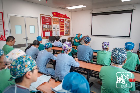 每天早上7點30分,是劉夢虓的上班時間。換好衣服后,所有參與手術的麻醉醫生都要參加晨會,了解手術基本情況、特殊患者的病情以及前一天的搶救情況。無異議后,麻醉醫生將奔赴各自的手術室。新華網 耿駿宇 攝 陳雨 文