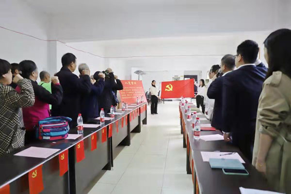 當天學習現場,全體黨員佩戴黨員徽章,面對鮮紅的黨旗,再一次舉起右拳,又一次宣讀入黨誓詞,回顧入黨初心,在重憶往昔中感懷黨恩,在重溫誓言中牢記初心使命。隨后,雙方黨員通過同學黨史知識、同談心得體會等,在增進相互了解的同時進一步堅定了聽黨話、跟黨走、為民辦實事的決心和信心。