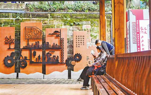 四月二日,渝中區雙鋼路小區,居民正在文化長廊里休閑。首席記者 龍帆 攝\視覺重慶