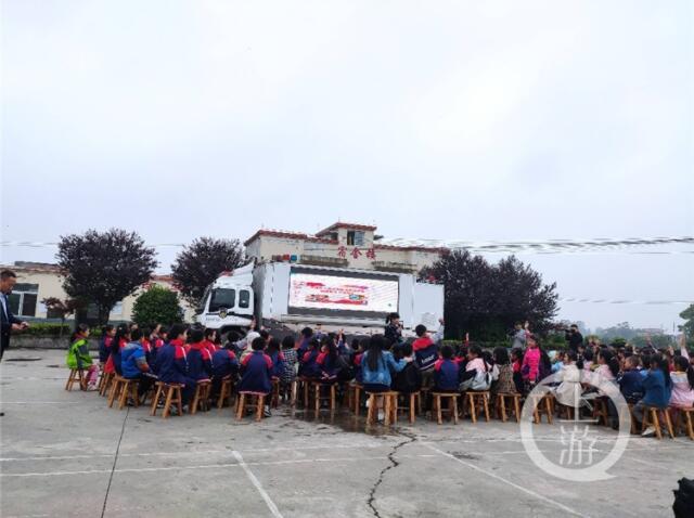 庭審結束后,江津法院的干警們還利用流動車載法庭,對前來參加旁聽的村民進行了現場普法宣傳。同時,流動車載法庭還開進了當地的村小,成了流動普法講堂,為孩子們講授如何進行校園暴力的防范。