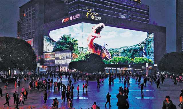 觀音橋裸眼3D巨屏迎來“侏羅紀公園”