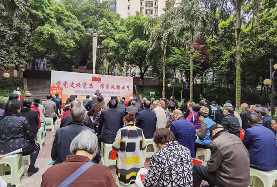 人民網重慶4月20日電 20日,渝北龍山街道龍華社區居民院壩內,一場“以學史、頌黨恩傳家風揚正氣”的微宣講開場。