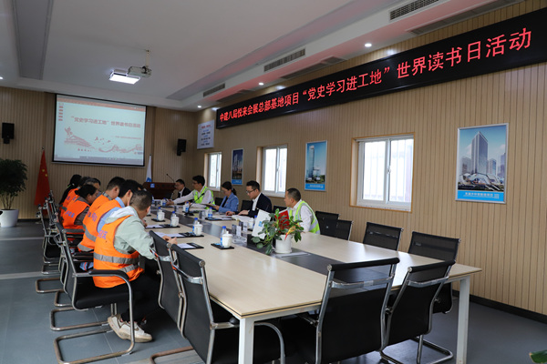 “黨史學習進工地”世界讀書日活動現場。中建八局供圖