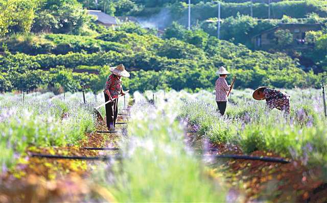 大足區高升鎮旭光村芳香產業園,工人正在田間管護花卉。通訊員 黃舒 攝/視覺重慶