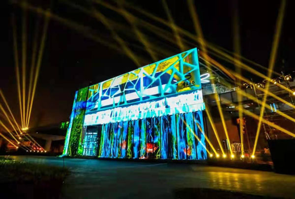 現場,投影秀以站臺墻面為畫布、光影為筆墨,與變換跳動的燈光碰撞、與動人心弦的音樂交融,壯觀絢麗的呈現創新啟程、智造未來、田園人居三大主題。