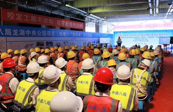 重慶龍湖中央公園項目,是重慶市渝北區的重點項目。為鼓舞全體建設者保質保量完成建設任務,中建八局西南公司安裝分公司別出心裁將勞動競賽和黨史學習教育結合起來,鼓勵黨員學史力行,帶動各競賽隊伍比學趕超,在勞動競賽中力爭上游,賽出水平,高質量完成生產任務。項目部通過贈送黨史書籍、工地微黨課、主題觀影等活動,形成了從項目黨員到農民工黨員再到職工群眾全覆蓋的學習氛圍。