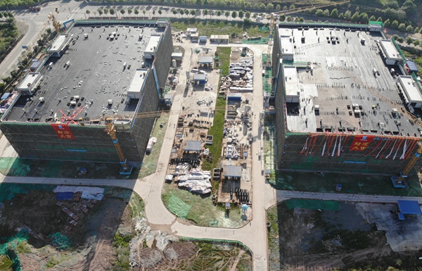 潤澤(西南)國際信息港一期項目主體結構封頂。中建八局西南公司供圖