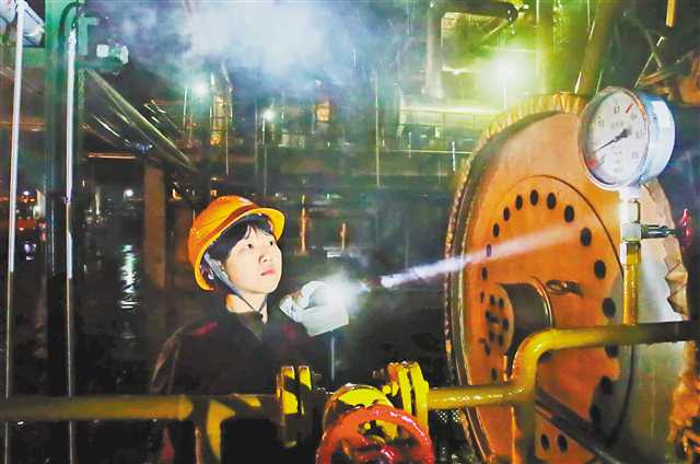 5月3日凌晨,重慶迎來暴雨,在墊江縣脫硫廠,90后現場操作工正在作業區檢查安全。特約攝影 向曉秋/視覺重慶