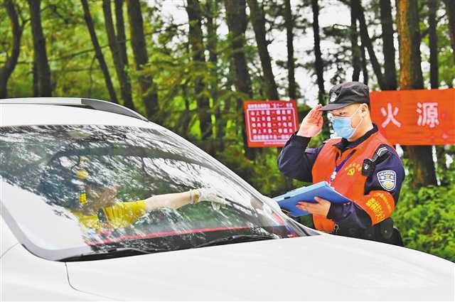 5月3日,綦江古劍山風景區森林防火檢查站,青年巡防員正登記進入景區車輛。特約攝影 陳星宇/視覺重慶