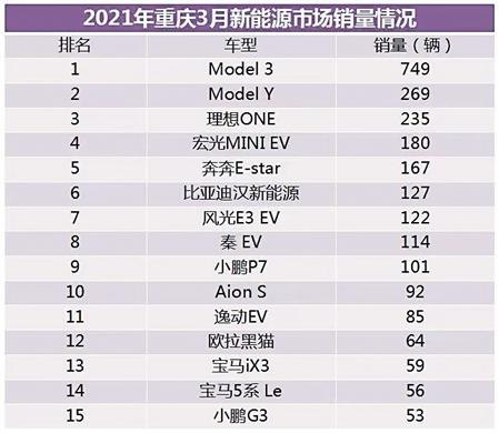 新能源車銷售,特斯拉是實至名歸的大贏家,銷量分別為1019輛。Model 3單月銷量達749輛,放在轎車市場來看的話,比朗逸銷量更高,直逼長安逸動系列。除Model 3外,剛上市不久的Model Y也以269輛的成績位居榜單第二位。