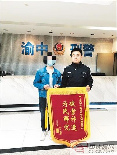 昨天上午,受害人母親劉女士來到渝中區公安分局刑偵支隊,為辦案民警送上一面錦旗,以表感激之情。