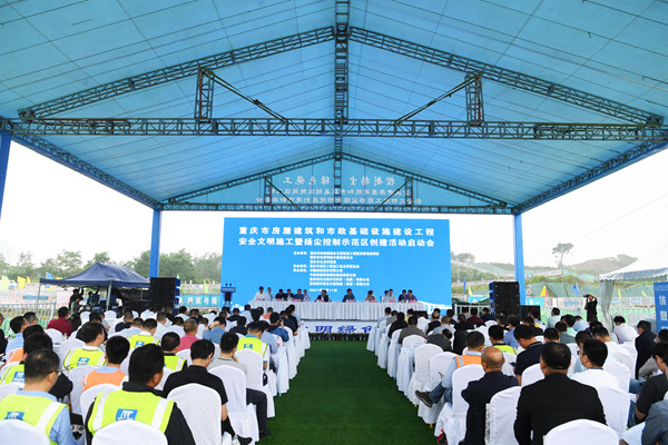 重慶市房屋建筑和市政基礎設施建設工程安全文明施工暨揚塵控制示范區啟動現場會舉行。中建鐵投供圖
