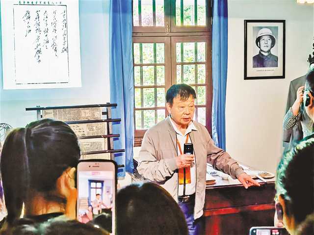 5月10日,吳連登在中共中央南方局暨八路軍駐重慶辦事處舊址毛澤東辦公室講述毛澤東同志艱苦樸素的生活細節。記者 趙迎昭 攝/視覺重慶