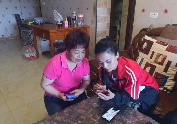 社區工作人員為退役軍人家庭激活電子醫?。古路鎮供圖