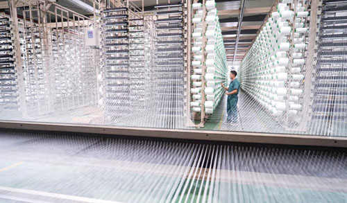 5月14日,工人在位于吳江區盛澤鎮的恒力集團博雅達紡織智能車間內作業。