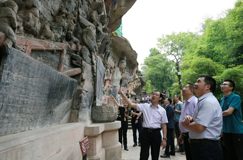 當天下午,與會人員前往大足區寶頂山石刻、北山石刻,現場考察重點石窟寺保護利用工作。(劉政寧、黃亞輝)