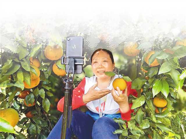 周鴻在柑橘園做直播。(受訪者供圖)