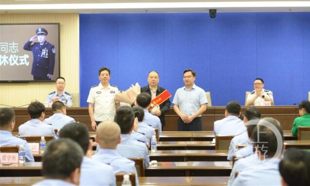 渝中區公安分局還為高萬祿舉行榮譽退休儀式。在儀式上,青年民警紛紛表示要向身邊的先進高萬祿學習;轄區群眾自發來到現場,為高萬祿送上鮮花和祝福。在現場,轄區群眾杜大姐再也控制不住自己的情緒,哭了起來。她說,她不會忘記今年春節期間,她不小心將自己反鎖在門外,是高戶籍連夜找了開鎖師傅為她及時開了鎖,讓她不至于露宿街頭。