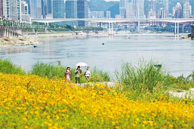 近日,北濱路曾家巖嘉陵江大橋江邊,市民在花叢中留影。長江、嘉陵江在朝天門交匯,形成重慶獨特的“兩江四岸”城市空間格局。近年來,重慶大力推進“兩江四岸”核心區岸線治理,統籌江、島、岸、城空間關系,修復生態水岸成效顯著。