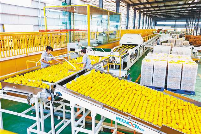 潼南區匯達檸檬生產車間的果實分選線。(市農業農村委供圖)