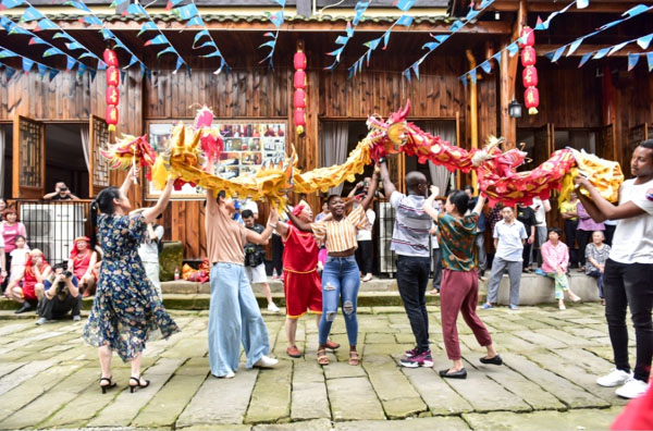 外國友人在重慶學舞龍(資料圖片)。巴南區委宣傳部供圖