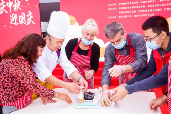 外國友人學習制作月餅(資料圖片)。巴南區委宣傳部供圖