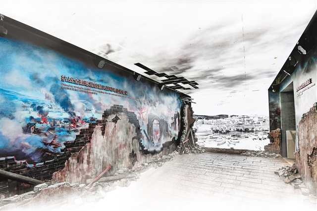 展廳四周布滿了破碎的青磚瓦礫、殘垣斷壁,墻上掛著當時日機投放的炸彈及燃燒彈的模型。置身其中,仿佛回到80年前重慶城陷入戰火的場景:耳邊是急促的警報聲,一架架日機飛過,密集的炸彈向市區傾瀉而下,形成一條密集的彈道,地獄般的景象,籠罩了美麗的渝州半島。