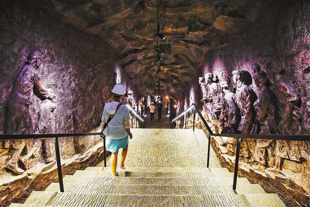 5月28日,重慶大轟炸“六五”大隧道慘案遺址,長長的階梯兩旁是避難者群雕。本版圖片由記者齊嵐森、崔力攝/視覺重慶