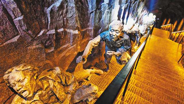 5月28日,重慶大轟炸“六五”大隧道慘案遺址,長長的階梯兩旁的群雕是避難者逃出隧道涌向洞外的樣子。