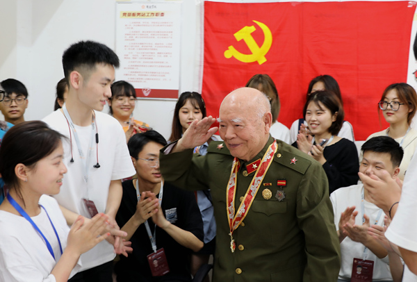 “我從參加革命工作起,就堅定信念,不怕犧牲,不怕吃苦,一心一意跟黨走……”近日,重慶警備區九龍坡離職干部休養所91歲老干部倪濟人受邀來到重慶工商大學藝術學院,結合親身經歷,為400余名入黨積極分子、預備黨員和黨員上了一堂生動的黨課。