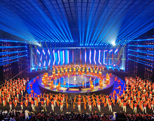 在舞美設計中,開幕式融入了重慶、永川及各區縣的獨特地理環境風貌,布設大面積LED激光設備,依靠超大地屏、側屏、空中網幕實現裸眼3D高科技效果,對一系列主題內容進行立體呈現。