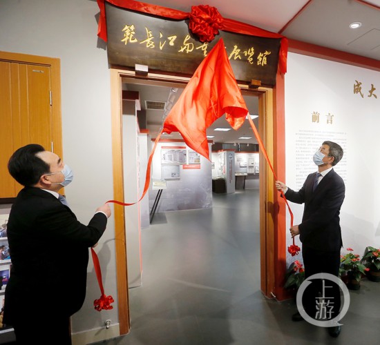 “范長江與重慶”展覽館7日在重慶工商大學圖書館北樓一樓開館,全國新聞戰線黨史教育實踐基地同步揭牌。中國記協黨組書記劉正榮,重慶市委常委、宣傳部部長張鳴出席活動。來自中央駐渝媒體、重慶市屬媒體、區縣媒體的新聞工作者代表和部分高校新聞院系師生參加開館儀式并參觀展覽。