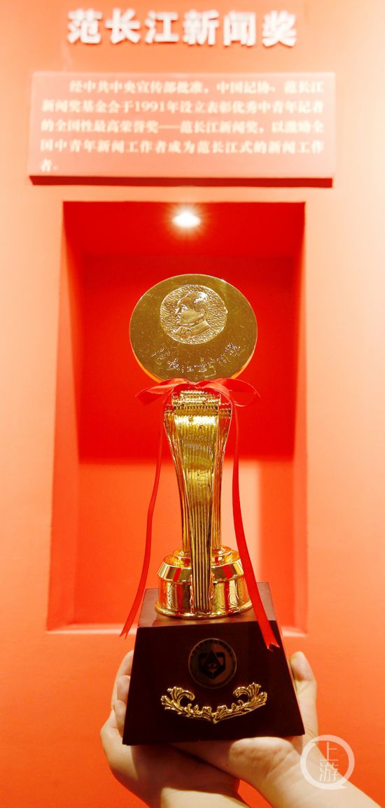 圖為“范長江新聞獎”獎杯。
