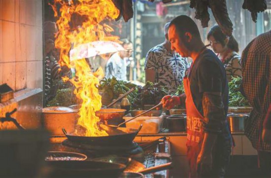 文昌宮戲樓,更值得一品。川劇名角金震雷就出生在淶灘,并常在這里演戲。戲樓平臺外欄木刻浮雕,有殘敗的遺憾,也讓人恍若隔世。若周末前往,還可坐著木椅搖著扇、喝著蓋碗茶嗑著瓜子,賞一場正宗的川劇。