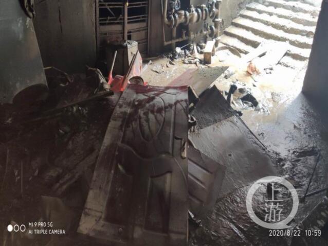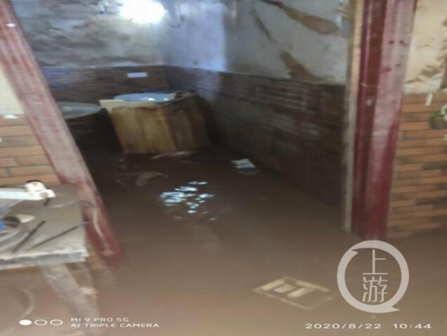 廖某店鋪備水淹的場景