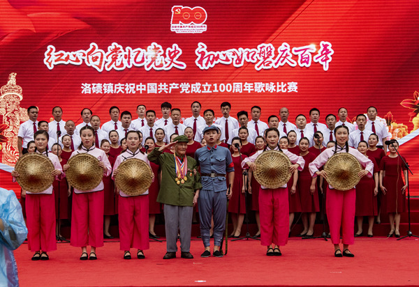 人民網重慶6月18日電 6月18日,“紅心向黨憶黨史 初心如磐慶百年”渝北區洛磧鎮慶祝中國共產黨成立100周年歌詠比賽在洛磧鎮政府廣場舉行。當天,來自鎮上的12支代表隊用歌聲表達對黨的無比熱愛,唱響時代主旋律。