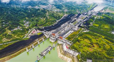 圖為6月19日,三峽五級船閘在穩健運行。