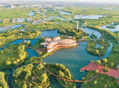 圖為6月9日拍攝的甘肅張掖國家濕地公園景色。該濕地地處城市北郊,與市區緊密相連,是張掖重要的生態系統,被譽為“城市之肺”。
