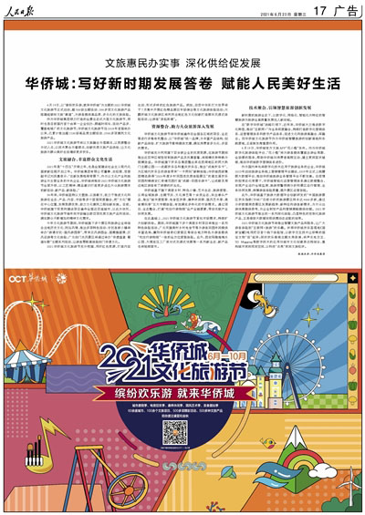 2021華僑城文化旅游節將以文旅融合為落腳點,以資源整合為切入點,以技術聚合為著眼點,創新優質文旅產品供給,讓文化旅游為群眾美好生活增添更多歡樂。