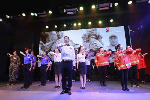 最后,全場觀眾揮舞黨旗,高歌《沒有共產黨就沒有新中國》,合唱聲中,整場展演落下帷幕。