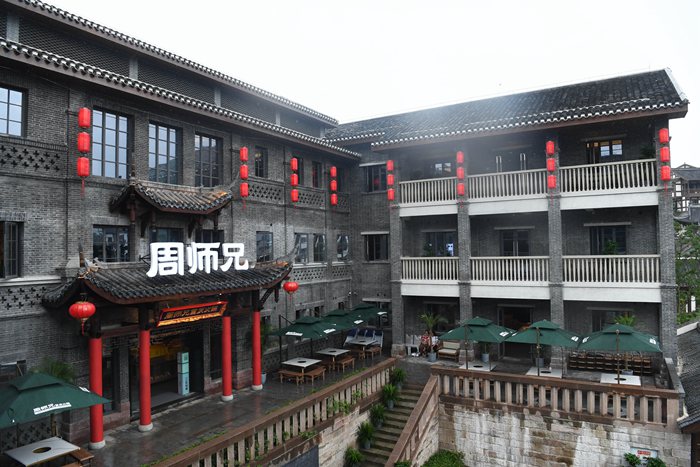麻辣鮮香的火鍋必不可少,擁有重慶直營門店最多的周師兄重慶火鍋,在這里打造約2248平方米的重慶火鍋非遺文化會客廳,室內不僅采用整潔明亮的原木色系設計裝潢,特色主題包房內,能一睹吊腳樓廣場全貌,并能透過落地窗欣賞到露天戲臺表演。